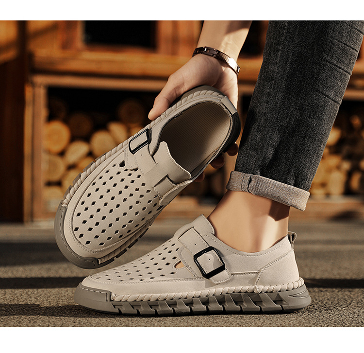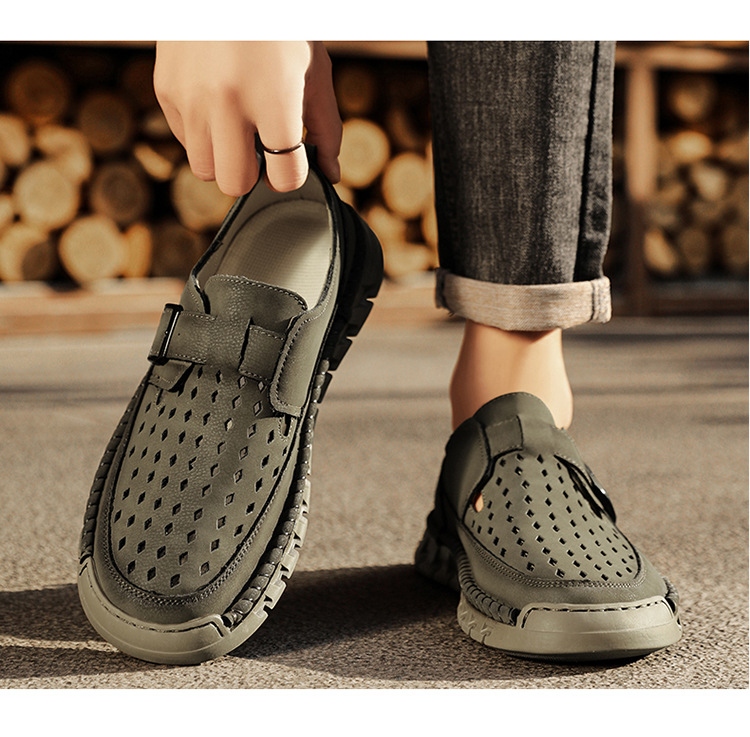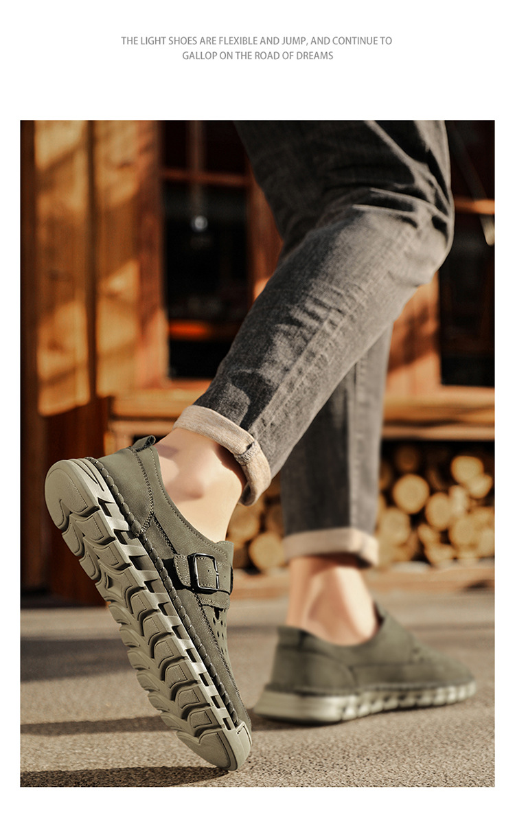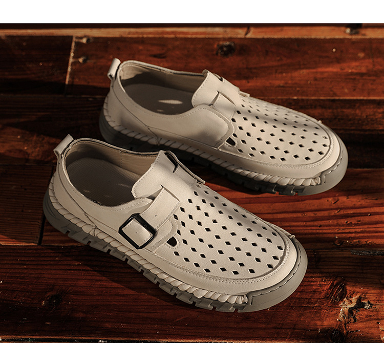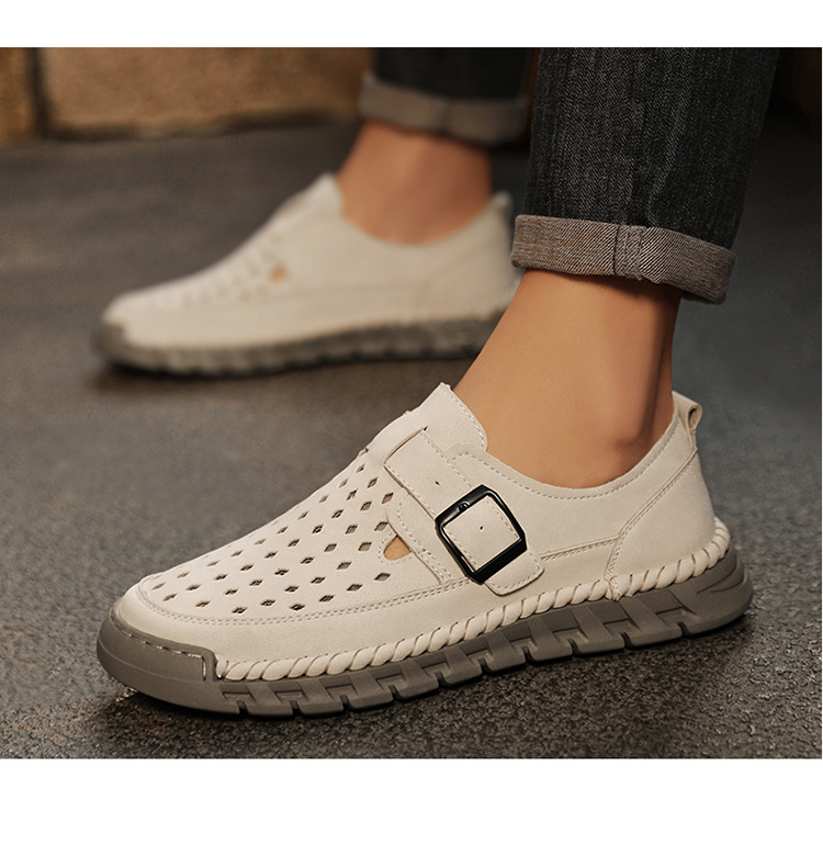 Mens Breathable Stitched Plus-Size Casual Leather Shoes