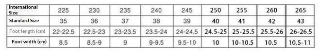 Sizes: 36, 37, 38, 39, 40, 41, 42, 43